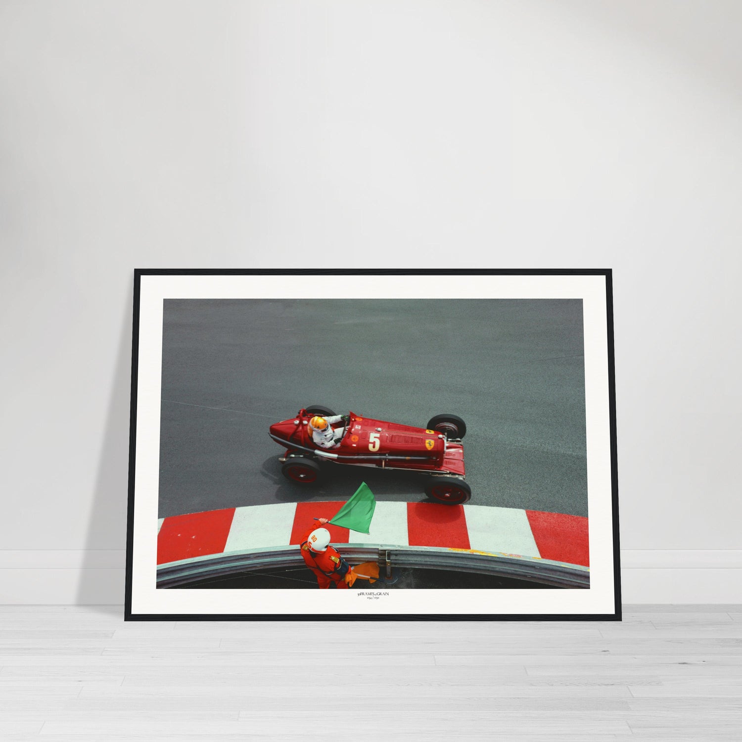In memory of Guy Moll and honoring his truly remarkable achievement in his maiden race for the Scuderia in 1934, Artwork 034 / 050 portrays the victorious Alfa Romeo P3 Tipo B at the iconic swimming pool chicane in Monaco. This artwork celebrates not only the triumph of youth and talent but also the enduring legacy of a car that defined an era in motorsport.